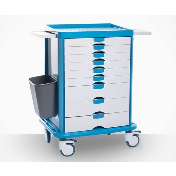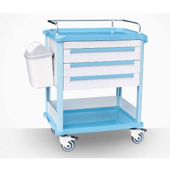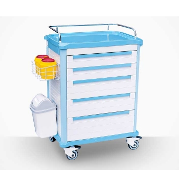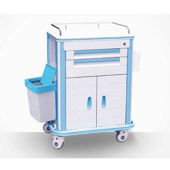 ABS發(fā)藥車 FG-B-04產(chǎn)品介紹:尺寸:658*475*1045MM1.包含6個小抽屜和3個大抽屜,多數(shù)量的藥盒供不同的儲存需要;2.4個直徑125的腳輪,兩個帶鎖,兩個不帶鎖;3.配有一個垃圾桶...